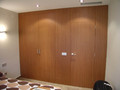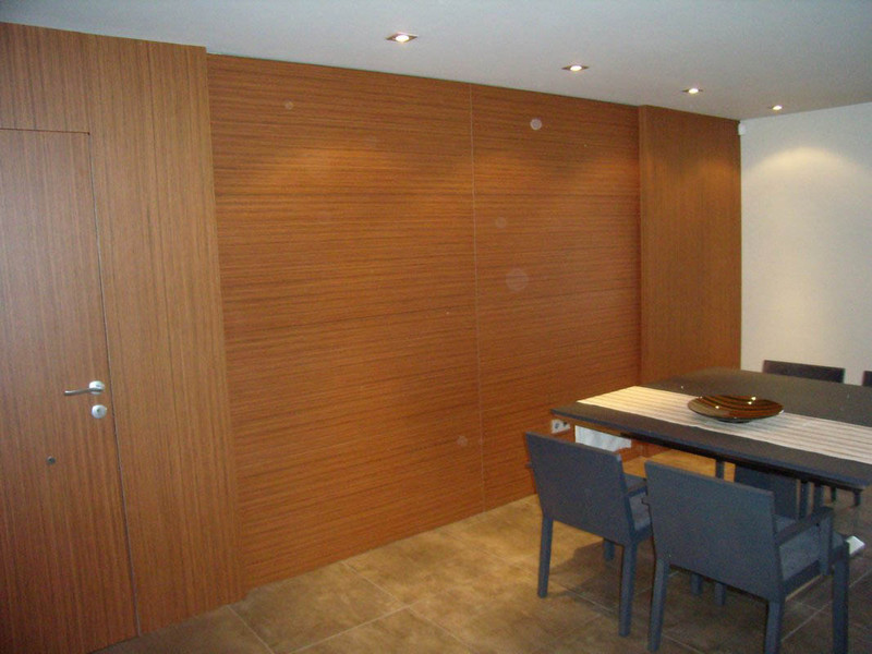 Mobiliario en general: muebles de comedor, armarios, puertas de paso, panelado y muebles de baño. Combinado en chapas italianas de teka y varias colores. Diseño: Xavier Pastor.